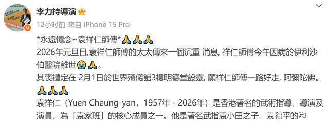 近些年,随着“袁家班”成员年纪渐长,动作电影不再那么受欢迎,他们也慢慢淡出了大家的视野。 2026年的第一天,却从香港传来一个坏消息,著名武术指导袁祥仁、“袁家班”核心成员,袁和平的胞弟突然去世,享年68岁。